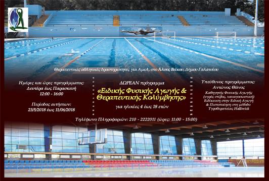 Read more: ΔΩΡΕΑΝ πρόγραμμα «Ειδικής Φυσικής Αγωγής και Θεραπευτικής Κολύμβησης»!
