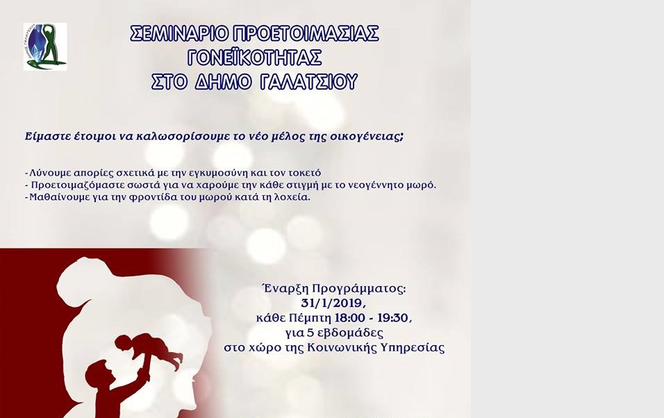 Σεμινάριο προετοιμασίας γονεϊκότητας στο Δήμο Γαλατσίου «Καλωσορίζουμε το νέο μέλος της οικογένειας»!